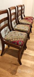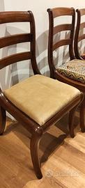 4 sedie in Stile Biedermeier con gambe posteriori a sciabola e seduta rimovibile. Attualmente con copertura moderna ma possibile ripristinare tappezzeria originale,