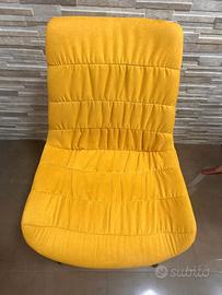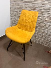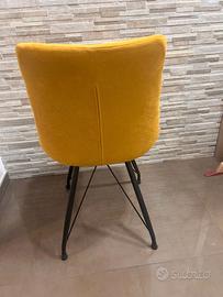 4 sedie in tessuto ocra con seduta imbottita e struttura in metallo nero, prese a marzo 2025, GARANZIA FINO A MARZO 2027