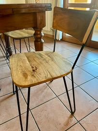 Vendo n. 4 sedie stile industrial chic di design acquistate da Coincasa, nessun segno di usura, legno massello e ferro battuto, adatte sia ad interni che esterni. Vendo anche tavolino abbinato stesso set e materiale, come da foto. Si vendono insieme, non divido, Solo ritiro a mano.
