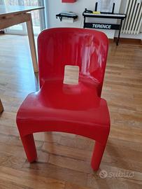 Realizzata in polipropilene, una plastica leggera ma resistente che rappresentava una novità tecnologica per l’epoca, la sedia è adatta sia per ambienti interni sia esterni. Il nome “Universale” riflette la sua natura polivalente: perfetta per la casa , come sedia da pranzo o da studio, ma anche per spazi pubblici, uffici e sale d’attesa.
