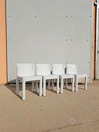 4 Sedie in plastica bianca design anni 70 di Carlo Bartoli per Kartell. Buone condizioni generali con qualche segno di utilizzo e del tempo. 44 x 44 x 71 cm Disponibili a Olmo di Martellago