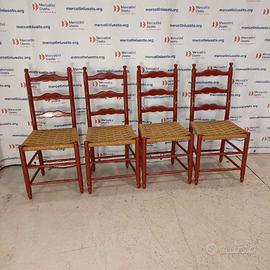 Gruppo di 4 Sedie Laccate rosse. Struttura in legno laccato rosso con seduta in
