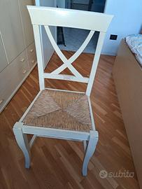 Vendasi prezzo cadauno sedie in legno massello e paglia attualmente usate in soggiorno/ cucina dimensioni seduta 40 x 40 cm / altezza seduta 45 cm e con appoggia schiena 93 cm. Tutte le sedie sono realizzate da artigiano a mano.