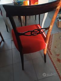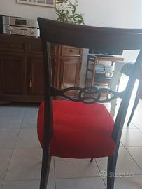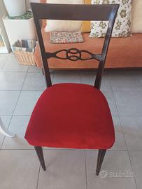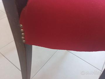 sedie in legno massiccio, sedile in velluto rosso con borchie dorate laterali. Consegnate dal tappezziere nel 2024 e praticamente nuove. Le vendo per motivi di spazio.