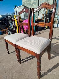 Gruppo di 4 sedie francese di metà 1800, stile Luigi Filippo, in legno di noce con gambe tornite. Ottime condizioni di tappezzeria.