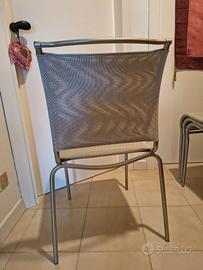 Sedia Air, adatta a completare l'arredamento della cucina e del soggiorno. Il sedile e lo schienale sono realizzati in Net, una "rete" in materiale sintetico lavabile e traspirante, che rende la seduta molto confortevole. Impilabile fino a 4 pezzi, leggera da spostare e resistente, grazie alla struttura in metallo.