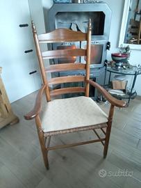4 sedie, seduta vimini con bracciolo, 35 €.l`una 1 sedia piu basso senza bracciolo, altezza 38 cm, 20 €
