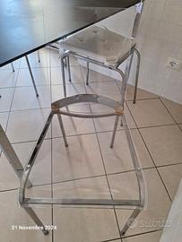 Vendo 4 sedie con seduta e schienale in plexiglass e struttura in acciaio cromato. Con piedino antirumore.