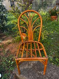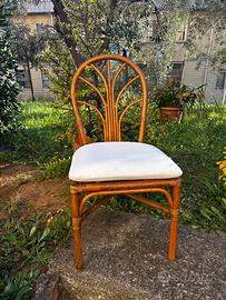 Set 4 sedie in rattan/bambù vintage con cuscini – stile naturale Vendo set composto da 4 sedie in rattan/bambù in ottime condizioni, complete di cuscini imbottiti. Struttura solida e design elegante con schienale decorativo, perfette per arredamento interno o veranda, ideali per ambienti in stile naturale, boho o casa al mare. Sedute comode e pronte all’uso, senza necessità di interventi. Vendita esclusivamente in blocco