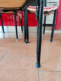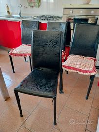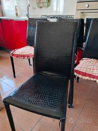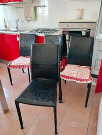 Set di 4 sedie nere con seduta alta. Sedie nere in tessuto simile pelle. Le sedie hanno alcune imperfezioni
