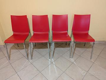 Vendo 4 sedie rosse come da foto. Il prezzo include tutte e 4 le sedie. Insieme regalo 4 comodi cuscini rossi della misura della seduta. Ritiro a mano in zona.
