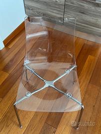 Descrizione 4 Sedie Scab zebra trasparente qualche piccolo graffio di usura. Disponibili da meta settembre. Ritiro a mano a carico dell'acquirente
