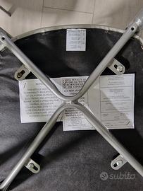 Set di 4 comode sedie Scavolini modello Speedy. Struttura in solido metallo verniciato grigio alluminio opaco, sedile imbottito, rivestito in tessuto Sonor alluminio. Non necessita di coprisedie o cuscini imbottiti. Schienale: aperto e leggermente arrotondato Misure: Lunghezza: 42 cm Profondità: 45 cm Altezza: 84 cm Altezza di Seduta: 47 cm Qualche segno usura