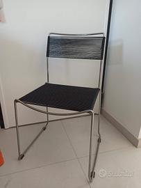 sedie originali anni 70 coi fili di plastica elastici morbidi comode tenute perfettamente nere e argento/cromato modernariato sedie di design fili plastica