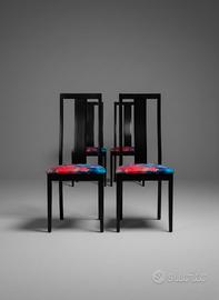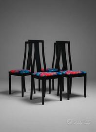 4 Sedie Stile Liberty Vintage, Design Post-Moderno elegante in legno nero ebanizzato, in ottime condizioni.