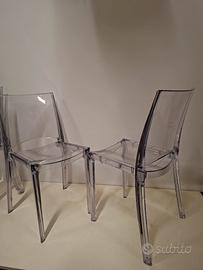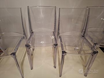 4 sedie trasparenti B-side Gransoleil. Belle e Robuste. Alcuni segni di utilizzo ma in generale in ottime condizioni come da foto. Non spedisco e non vendo separatamente.