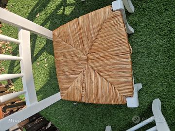 4 sedie riverniciate da qualche anno, e un pò da sistemare, 3 sedute praticamente nuove 1 da eventuale rifare.