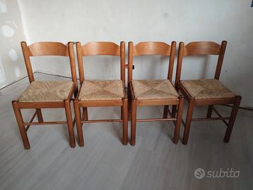 Sedie vintage in legno chiaro e paglia, anni '80, set di 6 Ritiro in zona San benedetto del Tronto