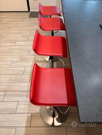 Vendo 4 sgabelli da cucina/bar regolabili in altezza, con seduta rossa imbottita e struttura in metallo cromato.