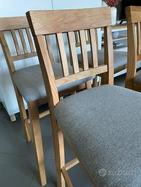 4 sgabelli alti legno chiaro e imbottitura tessuto grigio. Marca JYSK Misure: H seduta 63 Altezza totale 93 Larghezza 42 Profondità 42 Sono smontabili Presente solo una scheggiatura del legno su una gamba in basso (dettaglio in foto)