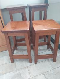Sgabelli da bar in legno massiccio con finitura color noce. Dimensioni sgabelli piccoli 27,5x26/h52, sgabelli grandi 27,5x 27,5/h 6 7