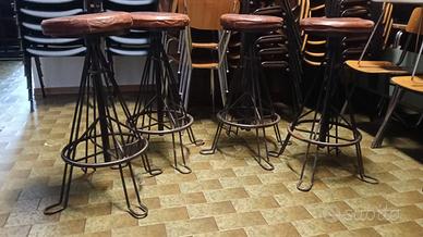 4 sgabelli in metallo con seduta in pelle