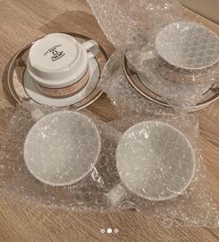 Servizio nuovo di 4 tazze da cappuccino/ cioccolata con piattino , mai usate. In porcellana resistente, tipo hotel . il prezzo si riferisce all’intero set ( 4 tazze e 4 piattini ).