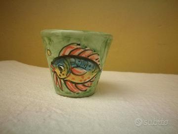 Bellissime tazze di ceramica decorate a mano con pesci diversi tra loro nella caratteristica Amalfi, pezzi 04 mai usate.