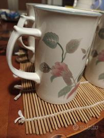 Quattro tazze nuove mai usate, Mikasa Continental modello F3003 Silk Flowers, da cappuccino, caffè latte ecc. preferibile consegna a mano eventualmente spedisco con subito o come volete. Visibili senza impegni.