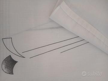 4 tende a pannello in cotone/polyestere colore bianco con disegno stilizzato nero h cm 284 larghezza cm 63. Velcro su parte superiore (cm 2) e doppia piega sul fondo per contrappeso cm 5 .