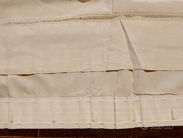 4 TENDE ECRU IN LINO, RICAMATE ALL'UNCINETTO NEL BORDO,
