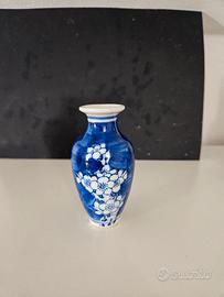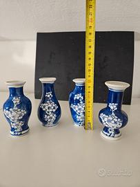 Vendo n. 4 vasetti ornamentali in ceramica colore blu con decori bianchi. In foto è presente la misura dell'altezza dei vasetti.