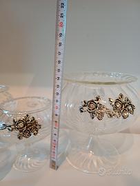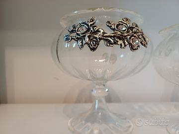 4 vasi vetro soffiato di Murano con inserti argento e swarovsky. Altezza da 14cm a 8cm.