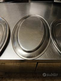 4vassoi acciaio lucido con bordo e svasatura molto robusti,lavabili in lavastoviglie,per tutte le portate,dagli antipasti ai dolci anche arrosti o paste con salse