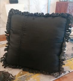 2 cuscini in vera pelle con frange colore nero 40x40. Come nuovi