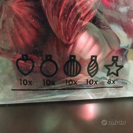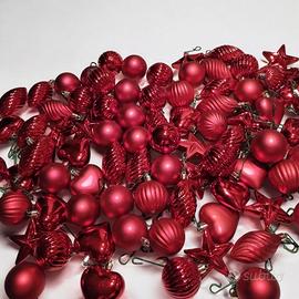 48 palline rosse in 5 formati diversi: rotonde, rotonde rigate, allungate, cuore, Stella .
