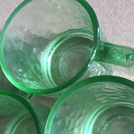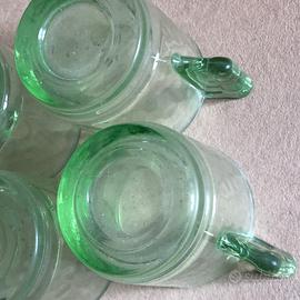 4x Tazzine Caffè Vetro Verde Acqua Uranio Vintage