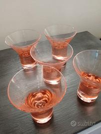5 bicchieri da cocktail in vetro rosa, fatti a mano Qualche piccolissimo segno di usura del tempo, ma praticamente impercettibile