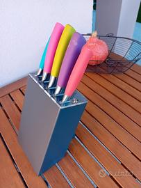 coltelli da cucina in acciaio inox colorati con supporto consegna a mano