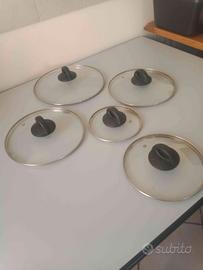 5 Coperchi in vetro con bordo in acciaio, per padelle e pentole