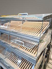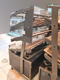 5 DISPENSER PANE SELF-SERVICE USATI 5 dispenser self-service pane usati, si tratta di una composizione modulare per backery self-service di supermercato formata da 5 vetrine espositive multi referenza per qualsiasi prodotto da forno: pane, focacce, brioches, pizzette, etc. alternati da un espositore angolare e due mobili porta bilancia self dove i clienti possono pesare quanto acquistato ed etichettarlo, vedere foto; tutto l'insieme ha le dimensioni di 760X230cm h165cm e costa 1.300,00€, ma i vari moduli possono essere acquistati anche separatamente, le vetrine pane saranno senza sponde ma le puoi aggiungere abbastanza semplicemente. disponibilità: - 5 moduli pane 135X95cm h165 - 250,00€ cad. - 2 moduli porta bilancia 70X80cm h105cm - 150,00€ cad. - angolare 100X100cm h165cm - 120,00€ Contatto: Giordano tel. 333 8921702 mail: rigiordy@yahoo.it
