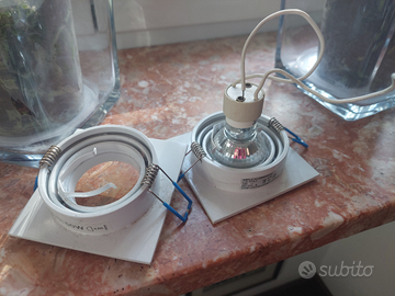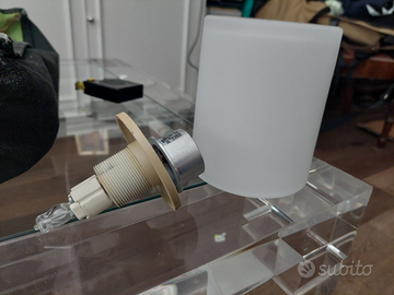 5 bellissime lampade da soffitto color latte, in vetro smerigliato/acidato incluse lampadine funzionanti a LED (IN REGALO) con le seguenti misure: diametro 10.5 cm - altezza 13 cm. (35 euro ciascuna) 2 faretti in alluminio bianco, con LED in omaggio (10 euro il pezzo). Lampada da tavolo, Ikea con lampadina,12 euro
