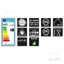 VENDO 5 PEZZI LAMPADE LUCE CALDA! TENSIONE DI ALIM. DEL SISTEMA: 12V DC POTENZA: 3W INDICE DI EFFICIENZA ENERGETICA: A+ ATTACCO: G4 COLORE CCT: 3000°K PESO GR: 10 VITA MEDIA ORE: 25.000 NB. nel prezzo non sono incluse le spese di spedizione DIMMERABILE: NO CONTENUTO MERCURIO: 0 mg CONTENUTO PIOMBO: 0% FLUSSO: 170 lm INDICE DI RESA CROMATICA: Ra82 Q.TA: 5PZ ANGOLO FASCIO LUMINOSO: 120° MATERIALE CORPO; PBT POSIZIONE DI FUNZIONAMENTO: QUALSIASI SDCM: 3.3 LLMF (6000h) : >0.80 LSF (6000h): >0.90
