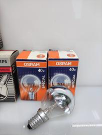 5 Lampadine Philips-Osram Cupola Argentata Sfera E14 25 - 40 W Nuove mai usate confezione originale.