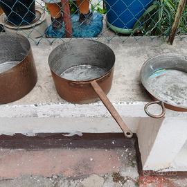 vendesi in blocco 5 pentole in rame Peso di tutte le pentole 14,5 kg. il prezzo non è trattabile . è possibile vederle senza impegno. Non spedisco!