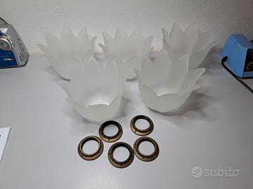 5 pezzi campanella paralume vetro opaco ricambio lampade lampadari E27 vintage diametro foro 41 mm Ottime condizioni con ghiere di fissaggio in materiale plastico