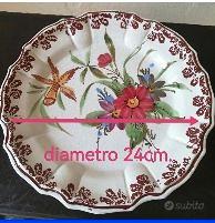 Originale collezione di 5 piatti da muro dipinti a mano, realizzati nella seconda parte del secolo scorso a Bassano del Grappa. Riproducono scene di flora secondo le usanze del tempo per abbellire le cucine. Misurano 24 cm. di diametro. Si garantisce adeguato imballo e spedizione tracciabile.