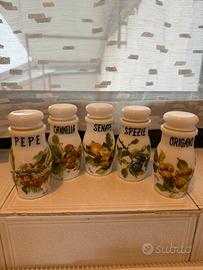 Sono sulle mensole della cucina da anni , credo usati molto poco da mia mamma , ma sempre puliti e tenuti con cura , hanno ancora dei bei disegni e i tappi sono ancora a tenuta , c’è ne uno che è un po ingiallito, ma sono tutti in buono stato, per info sono a disposizione