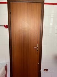 Vendo 5 porte in legno: 3 porte di cui una a vetri misura 82x200 cm, 2 porte di cui una a vetri misura 73x200 cm, comprensive di maniglie e telai. Si prestano ad essere dipinte senza dover carteggiare.Trasporto a carico dell’acquirente. 90 euro cadauna.Vendute anche separatamente.Prezzo trattabile