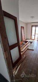 Regalo 6 porte in legno (4 in legno, 1 a vetro, 1 in legno ma rovinata) + telai + battiscopa in legno + copri termosifoni in legno bianco (anche separatamente) Le porte sono già smontate, vanno solo prese e portate via
